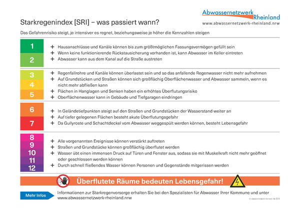 Kostenfreie Downloads für die Vorsorge gegen Schäden durch Starkregen des Abwassernetzwerkes Rheinland: